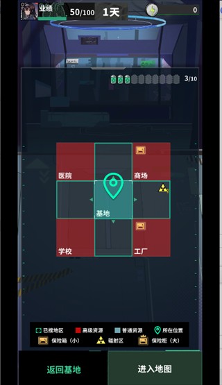 1、物资搜索是核心,在不同的地方去搜索物品,上交不同的物品,解锁更多的内容。