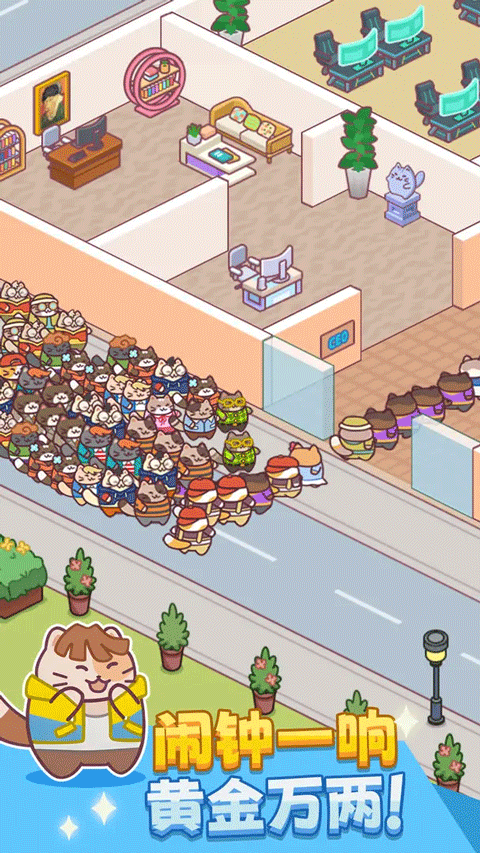 搬砖之王猫咪打工模拟器是一款可以建设公司的游戏,你将会招募更加多可爱的员工,也可以使用道具让自己的员工更加精神抖擞,比如咖啡和下午茶等等,不断扩大自己的搬砖帝国,建设你的公司,所有的打工人形象都是非常可爱的小猫咪,通过升级也可以得到董事长形象的猫咪,赚到更多的钱,不断扩大自己的猫咪公司,喜欢搬砖之王猫咪打工模拟器的玩家一定不要错过!