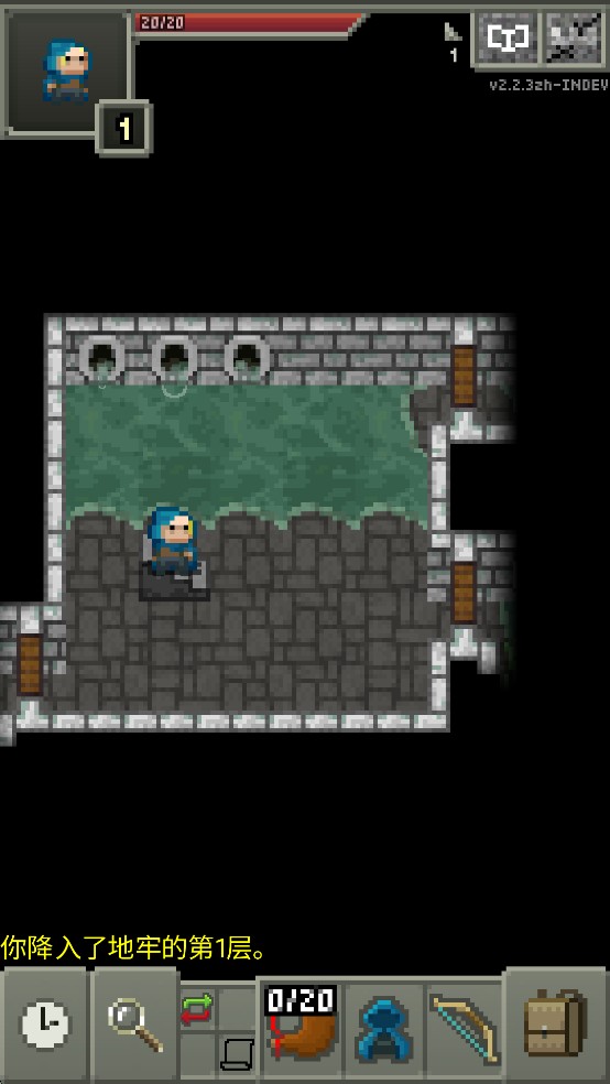 音乐是8-Bit的电子乐,但是却能将一个独自探索的冒险者的气氛烘托出来。界面也非常简洁,左上角是你的HP槽,右上角是告诉玩家你最高的层数和现在拥有的钥匙数,下方就是文字叙述玩家的遭遇以及各种选项。