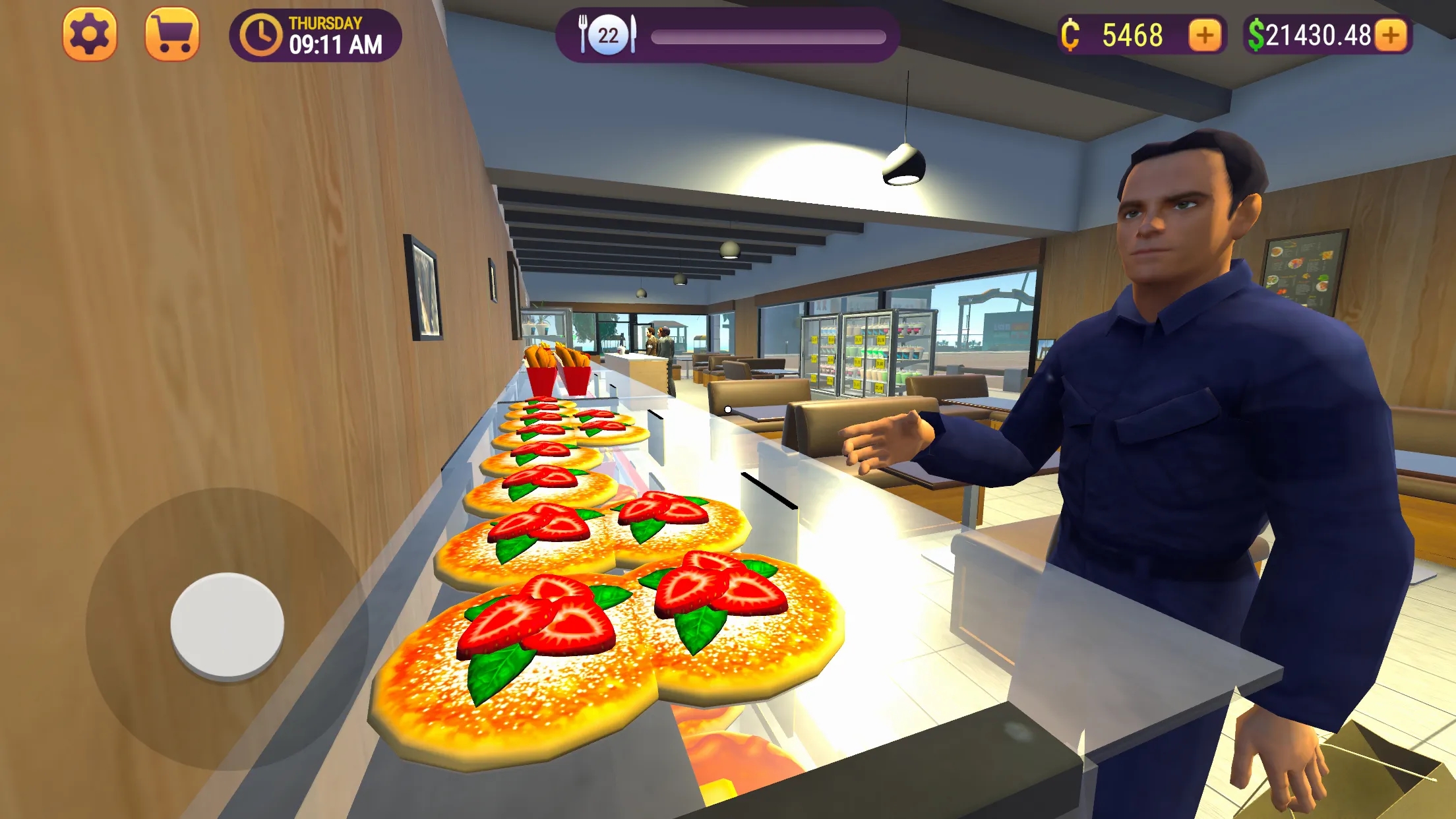3、解压游戏经营管理,收集游戏中的金币,解锁更多的美食菜谱进行经营