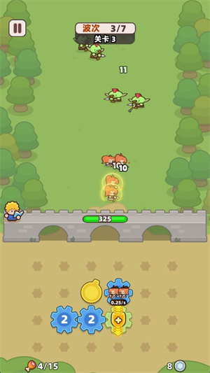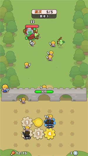 3、点击战斗后齿轮会转动来召唤小兵,小兵会自动消灭出现的怪物敌人