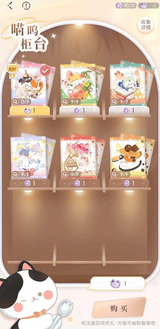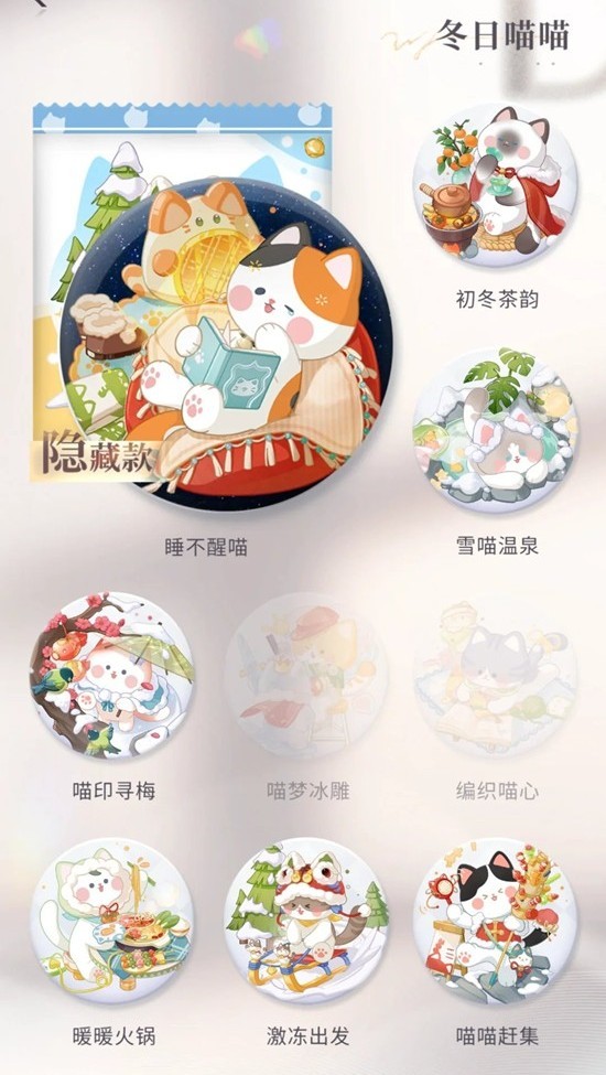使用限定喵呜币,可在活动期间抽取「职业喵喵」系列徽章。共有8种普通款+1种隐藏款徽章等你收集!
