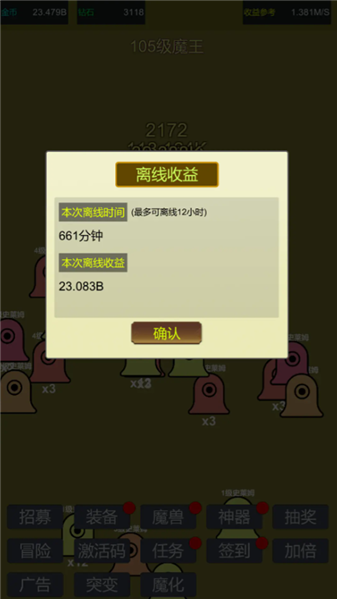 1、躺着挂机也可以升级,快速升级自己的史莱姆等级