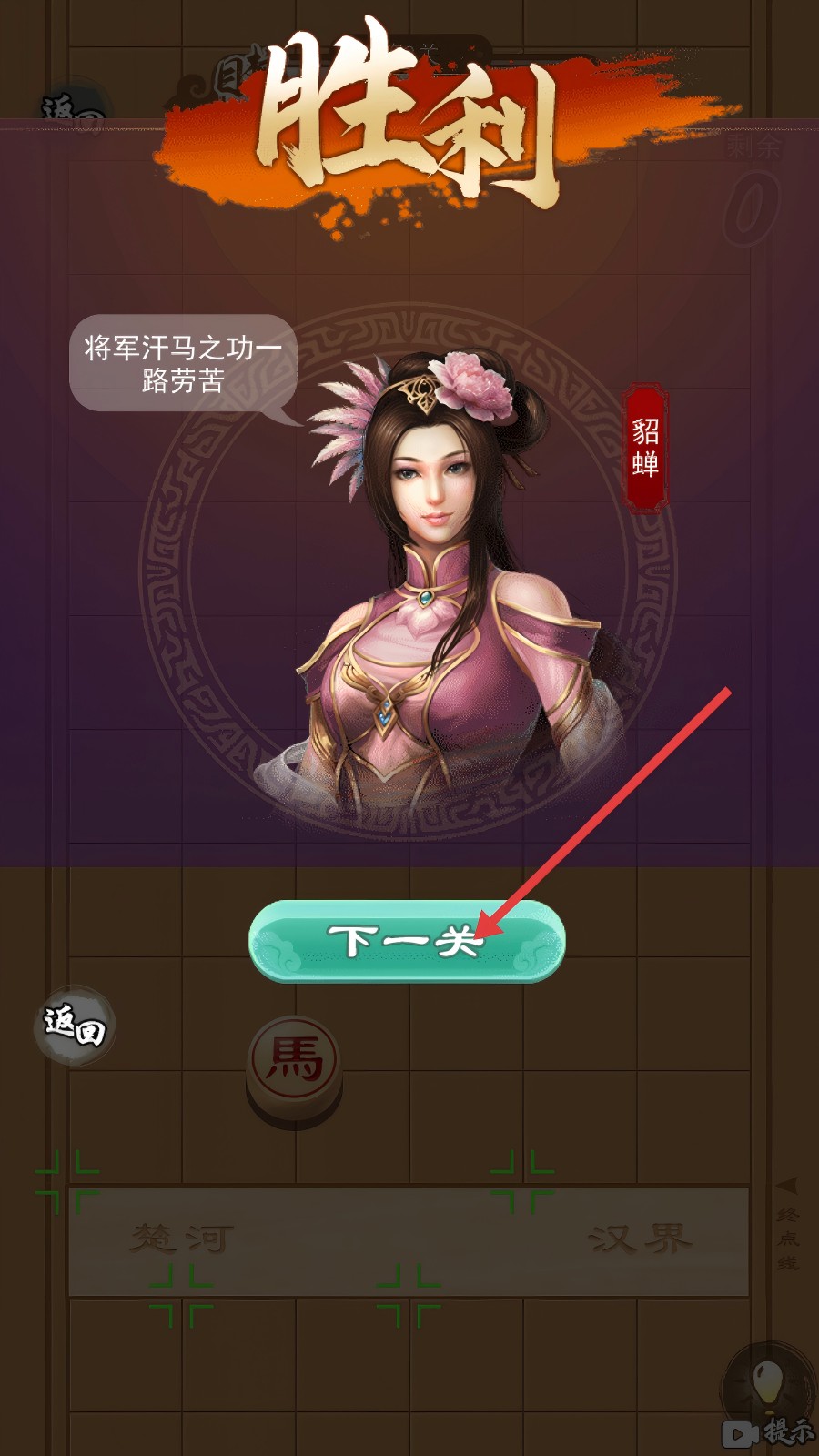 4、达成目标后弹出“胜利”界面,点击【下一关】按钮,就能挑战后续关卡