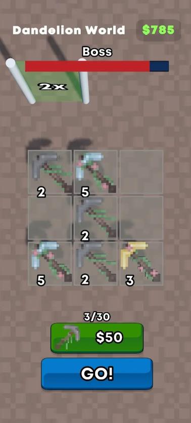 3、采矿冒险,对抗不同的敌人,合并升级开始作战