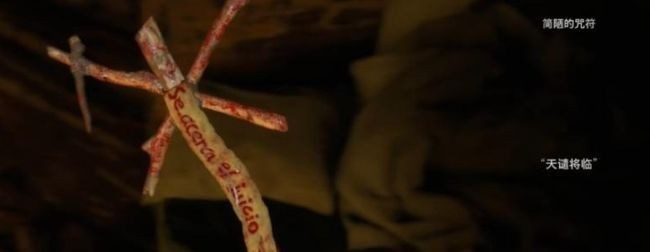 2.里昂走到尽头,发现一间小屋。进入小屋后左转,在房间内的床上找到一个咒符。随后,他离开 房间,打开尽头的一个房间门,触发剧情。