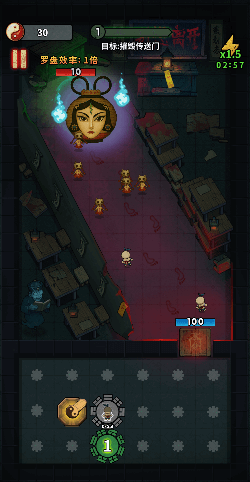 1、通过战斗来收集罗盘,不断的去利用罗盘的道法击败敌人。