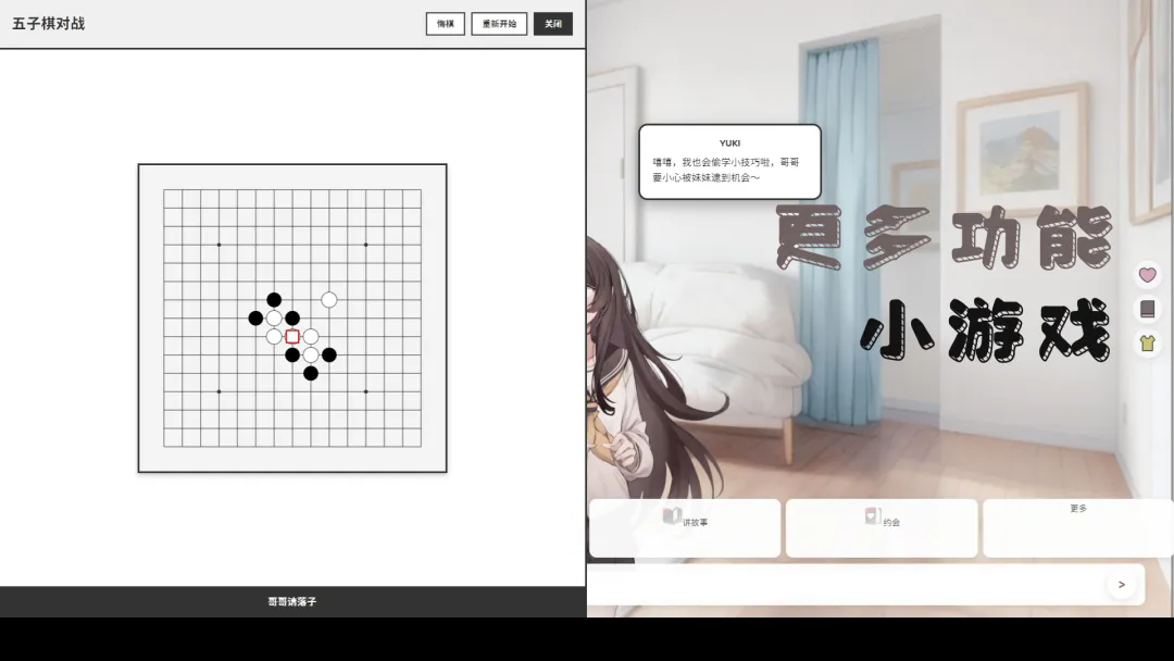 妹居物语汉化版作为一款画面设计非常精致的模拟生活类游戏,在温馨的二次元世界之中开始互动探索,扮演其中的主角,互动妹妹yuki开始共同生活,照顾她获得美好的生活。根据玩家的对话和选择探索出不一样的故事结局,日常对话交流的方向非常自由,还有不同的内容等待你来体验,感兴趣的玩家快来游戏挑战吧!