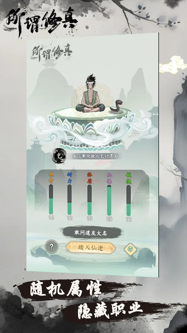 开局属性只是影响技能点的多少,每当角色升一小级就会新增5个技能点。所以不必太苛刻要求属性太高,一般基本处于20以上就可。五个属性优先点机缘其次敏捷和根骨,开局主要刷的是宠物,先填加群有礼包兑换码,进游戏有送的15w灵石最好留5w灵石备用,抽吞金兽击败一次怪物额外获得3灵石和吞金神兽击败一次获得6灵石。