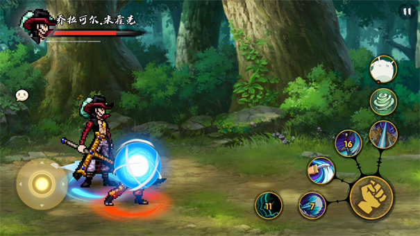4、通过左侧虚拟按键控制角色移动,右侧则是有各种技能按键。