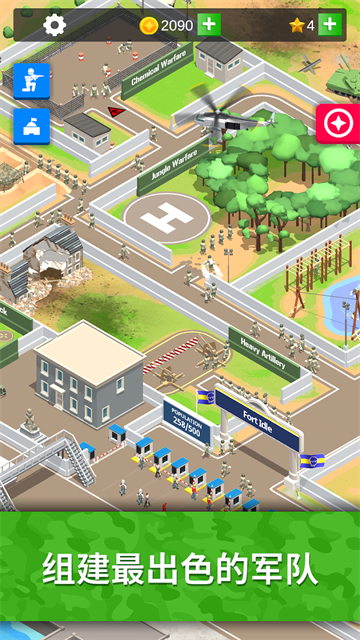 闲置要塞免广告版是一款休闲策略类的放置军队游戏,玩家将扮演军事基地的指挥官,你可以招募并训练士兵,组建一支所向披靡的军队,有着一系列的战斗任务等待你来完成。精致的卡通画风,整体都呈现出小清新的视觉效果,没有任何的压力。采用了简单的放置操作,让新手玩家也能快速上手,十分有意思。