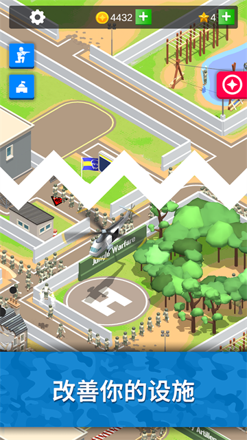 大家可以按照自己的想法来管理基地,不断扩大你的营地规模,提升整体的军事实力,去完成更多的战斗任务。