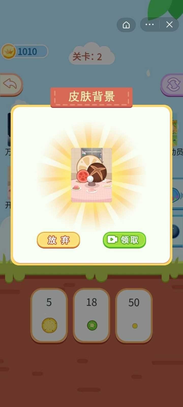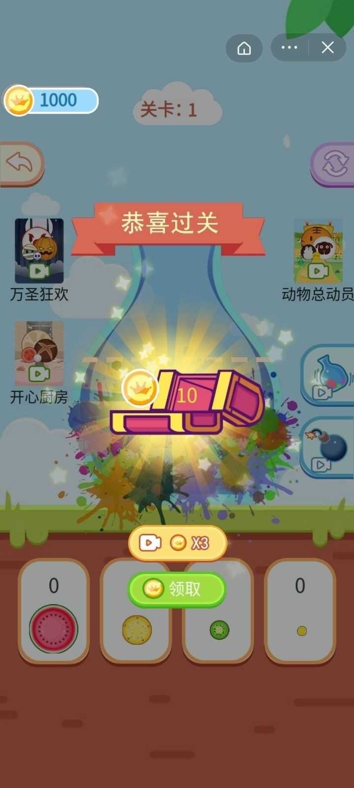 3、利用合成消除水果达到通关分数,完成闯关的挑战。