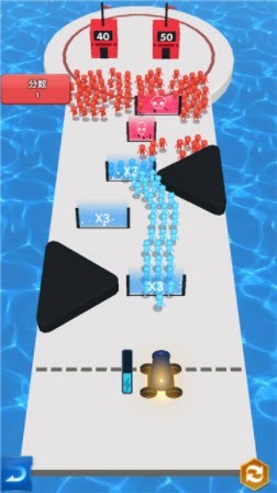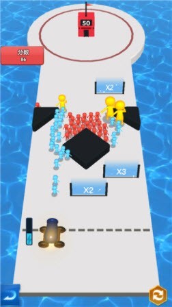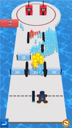 2、利用火炮来发射小人,通过带有数字的大门增加人数,碾压对手。