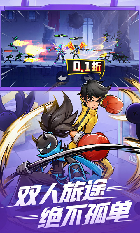 火柴人归来0.1折是火柴人联盟的超爽割草手游,这次带来热血福利:下载即享0.1折超值特惠,额外赠送648代金券,豪礼领不停!享受畅快淋漓的打斗体验,成为最强火柴人王者!快来加入我们,与火柴人战士们一起向这个游戏世界发起挑战!