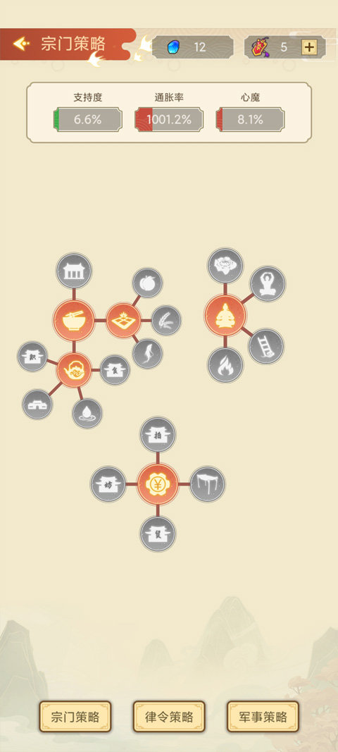 2、可以培养弟子修炼各种功法,每种功法都有不同的效果和进阶路径。