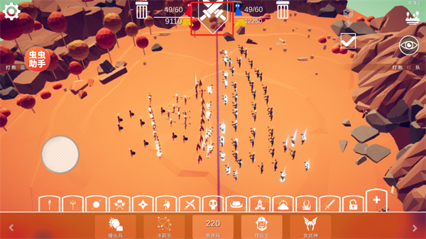 3、前期阶段可以放置你想要放置的【兵种】,开启游戏中布局;