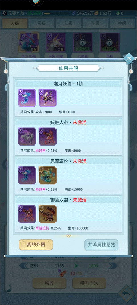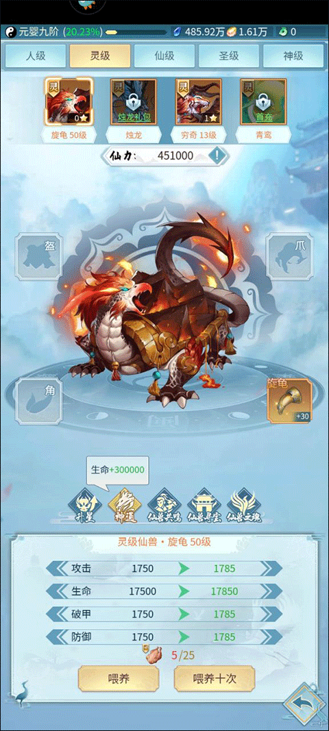 在游戏内仙兽是每个玩家都会有的一个系统,提升自己的仙兽自己的战力随之会增长。那该如何提升呢?我们需要从提升仙兽的数量,提升仙兽的等级,提升仙兽的星级,给仙兽获得对应的装备这些方面提升小编就以提升仙兽的等级为例,当我们拥有相对品级仙兽的升级道具,就能够对仙兽进行喂养,仙兽的等级越高,提升的战力也就越高,除了提升等级以外,凑齐有相对羁绊的仙兽也能提升额外的战力。
