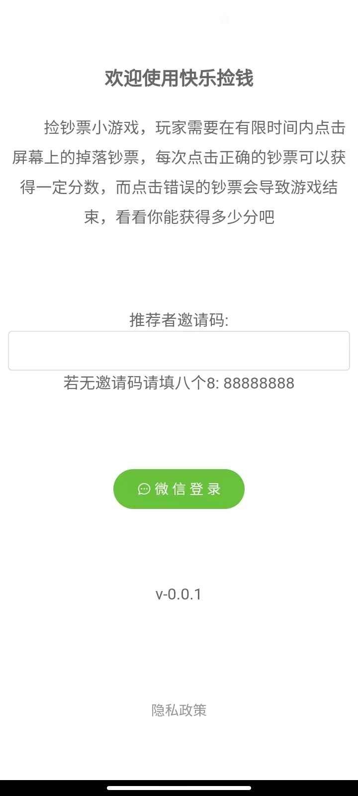 快乐捡钱是一款轻松有趣的休闲游戏,简单易上手。玩家只需要通过点击屏幕来控制人物移动,捡钱币,躲避障碍,体验收获快感。游戏中的道具和技能让玩家更加容易地捡到钱币,加速游戏节奏,感受游戏乐趣玩家要时刻掌握好自己的移动方向,避开路上危险的障碍,挑战自我,争夺最高分数,给玩家带来更加丰富的游戏体验。