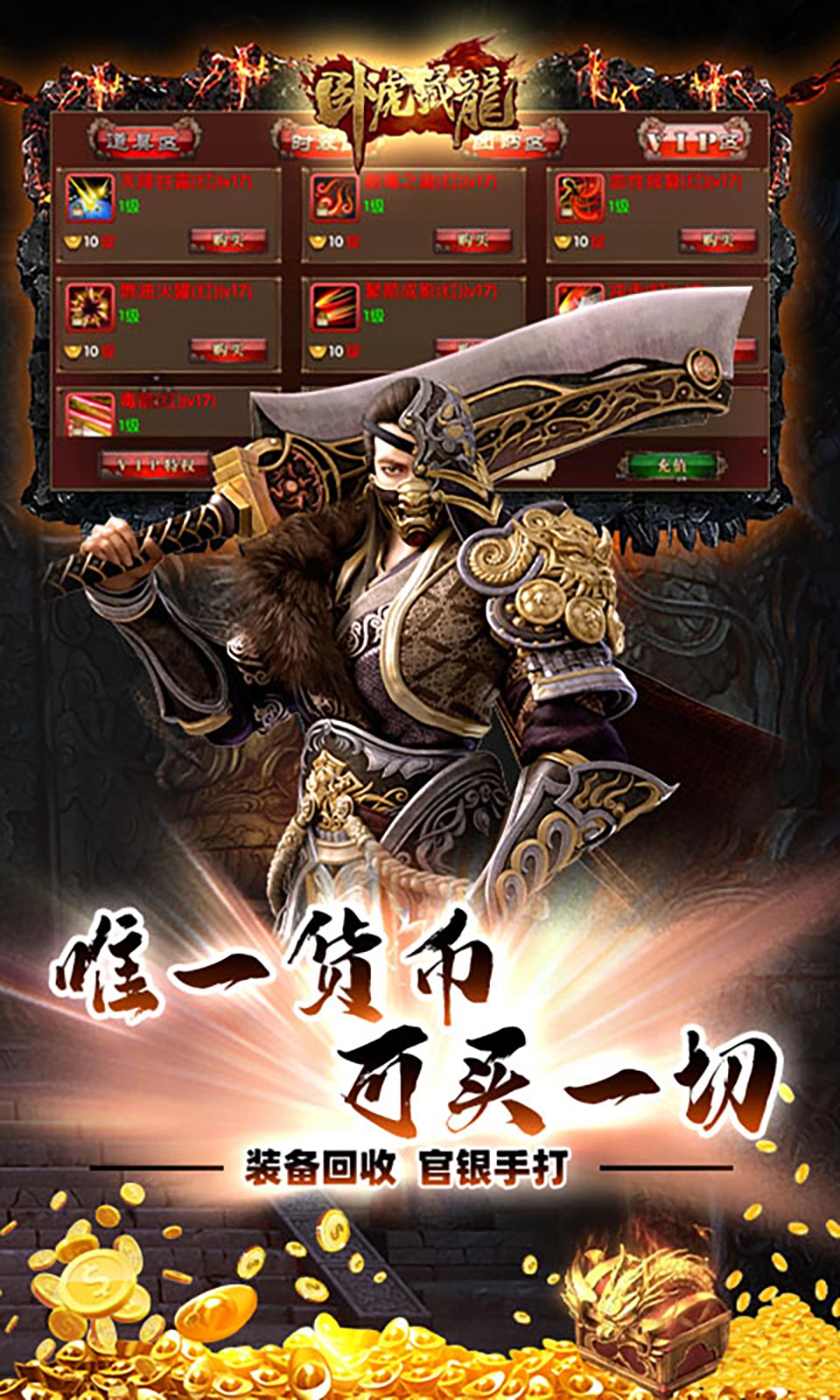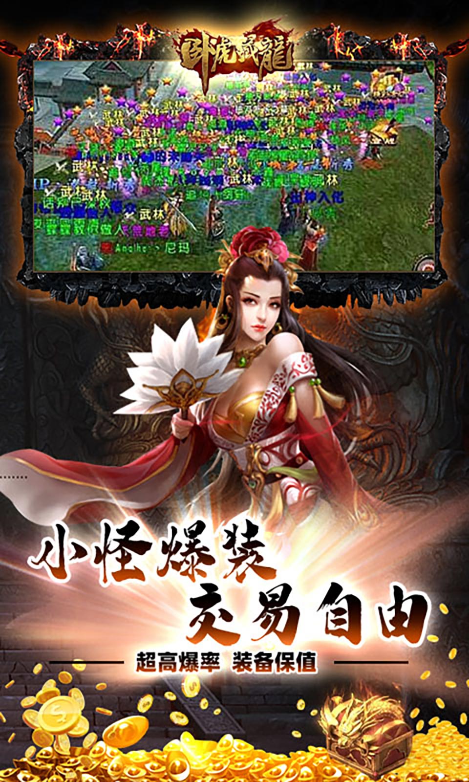 卧虎藏龙是一款百人同屏传奇冒险角色养成高爆秘境战斗游戏,可以和其他玩家一起进行大规模的战斗,同时也可以进行角色养成,提升实力。以与数百名玩家同时进行战斗,体验大规模战斗的刺激。