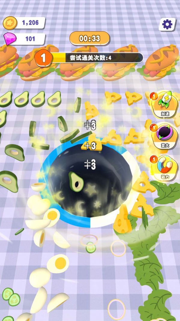 1. 独特的游戏玩法,游戏以吞咽食物为核心玩法,给玩家带来全新的游戏体验。
