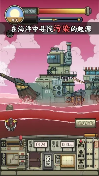1. 驾驶船只升级各种装备设施,进入海洋完成你的净化使命。