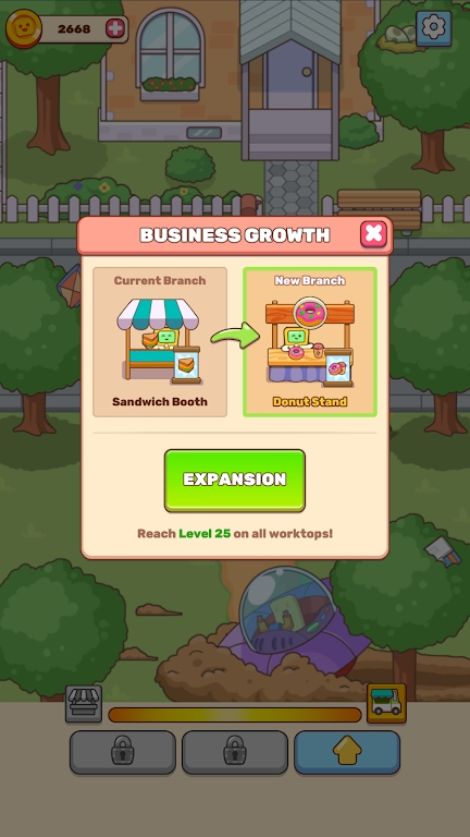 游戏中的经营过程无需手动操作,玩家只需要设置好店铺和菜谱,顾客就会自动上门消费。