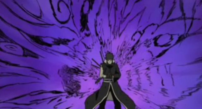 施放时,宇智波带土会将背部的八颗求道玉收束于左手,向前推出一道具有高穿透性的直线光束。如果在释放一技能的过程中滑动二技能指令,则会触发强化变招,求道玉将从空中垂直坠击地面,落地时展开十字形的烈焰冲击波,并同时激活普攻强化状态。在强化状态持续期间,普攻命中敌人可以延长该状态的持续时间。